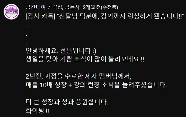“선달님 덕분에, 온라인 강의까지 런칭하게 됐습니다”
