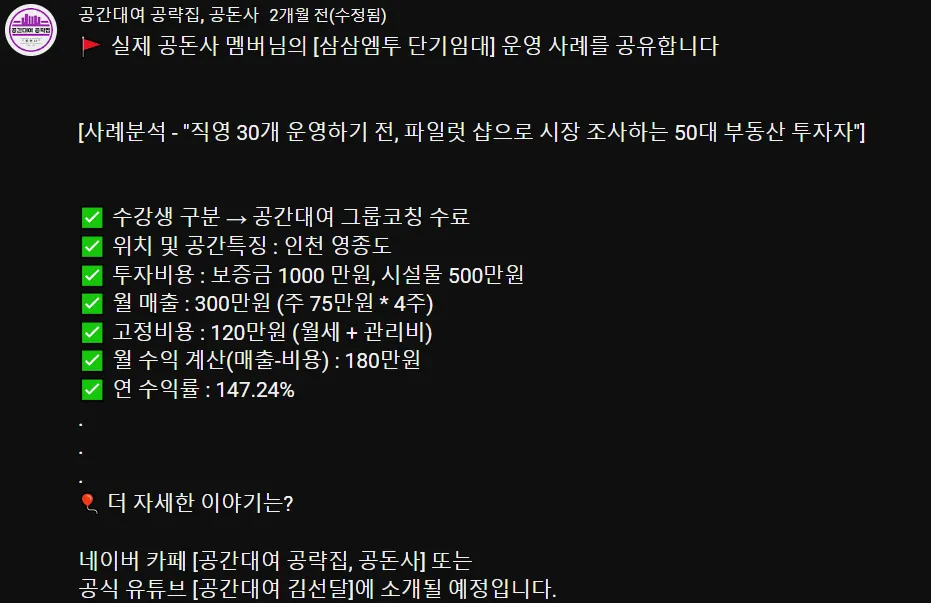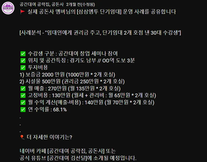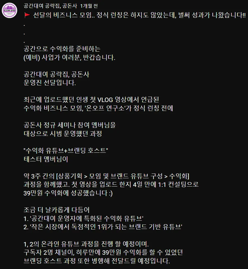 “공간없이, 경험 만으로도 수익화가 되네요?!”
