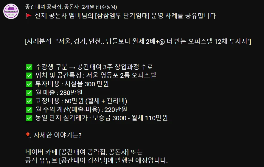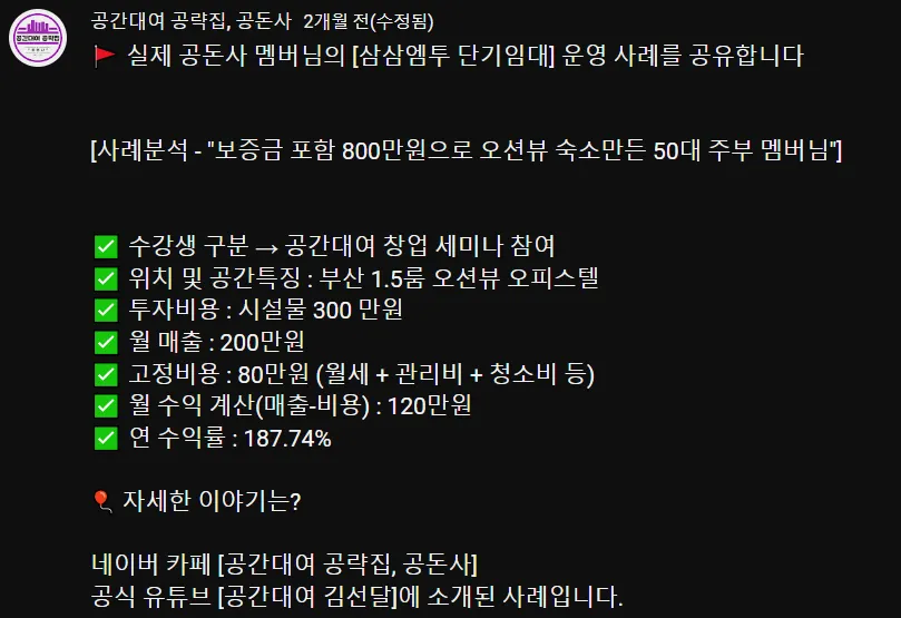 “단기임대 숙소를 운영하는 임대인에게 권리금 400주고 2개 인수했어요! ”