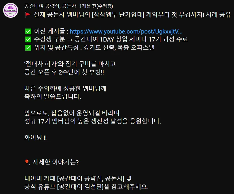 By. 취업 대신, 공간대여 사업을 선택한 20대 대학생 멤버님 (정규 : 1DAY 창업특강 수료)