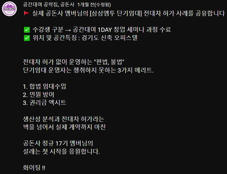 “합법 에어비앤비는 2달 도전해도 창업못했는데.. 단기임대 오픈까지 딱, 3주 걸렸어요!!”